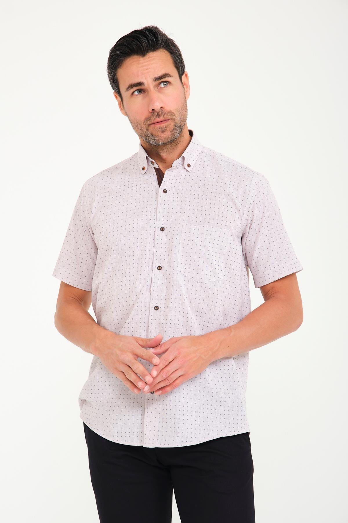 Klasik Kısa Kol Çarpı Filafil Desen Düğmeli Yaka Hediye Kutulu Erkek Gömlek FS-001215 - Bej (FS-001215)