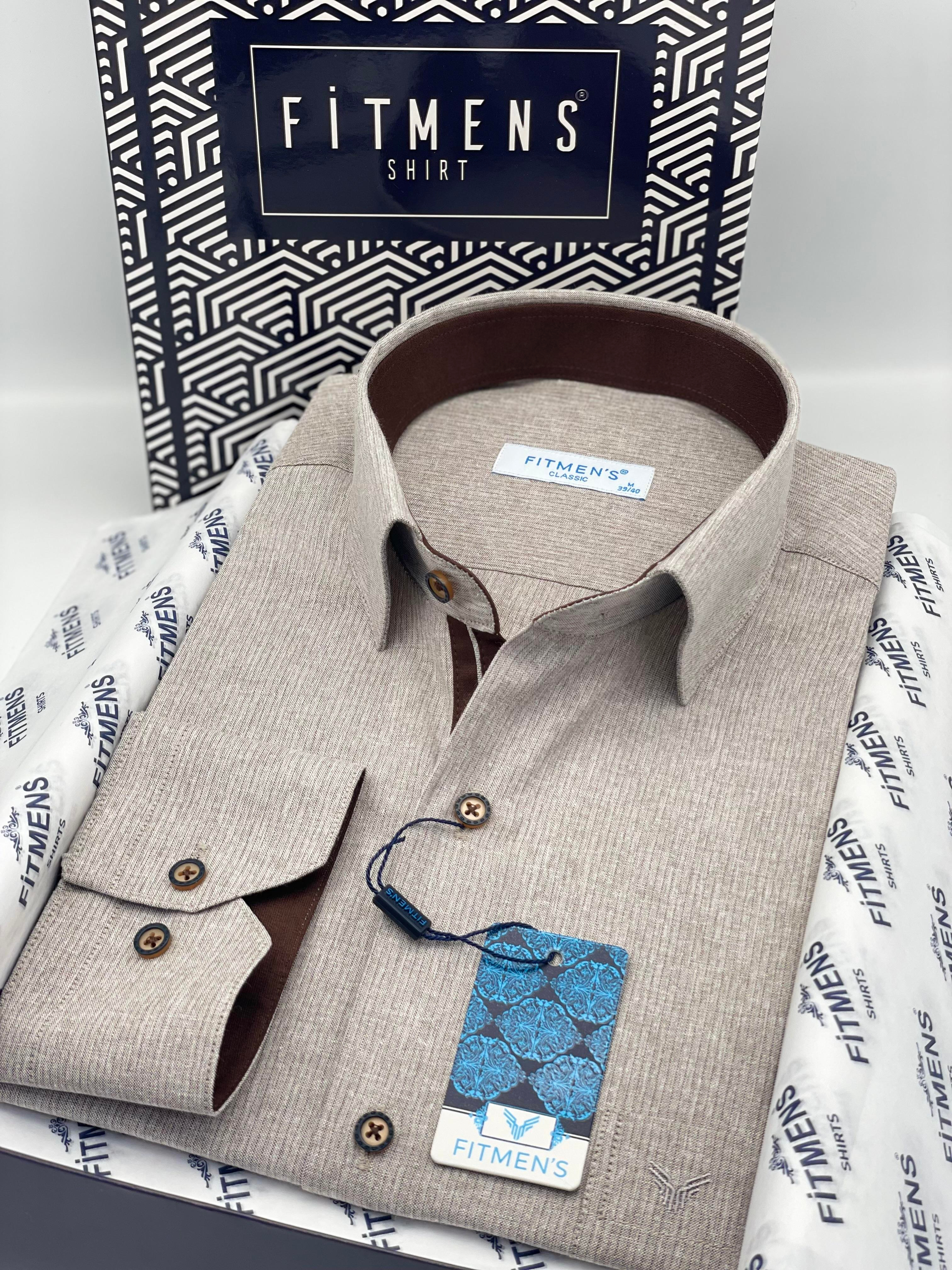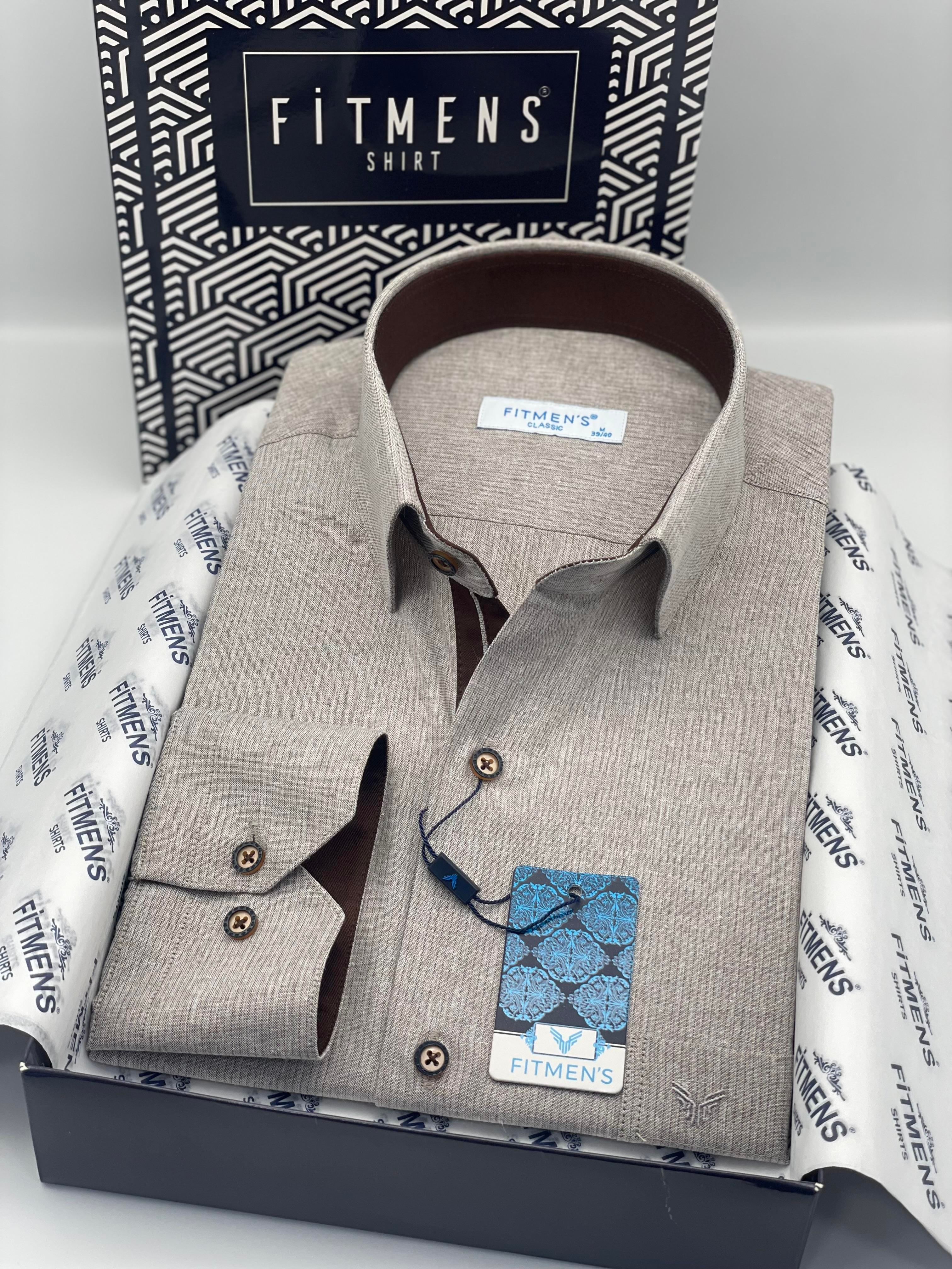 Klasik Uzun Kol Keten Cotton Hediye Kutulu Erkek Gömlek FS-001261 - Bej (FS-001261)