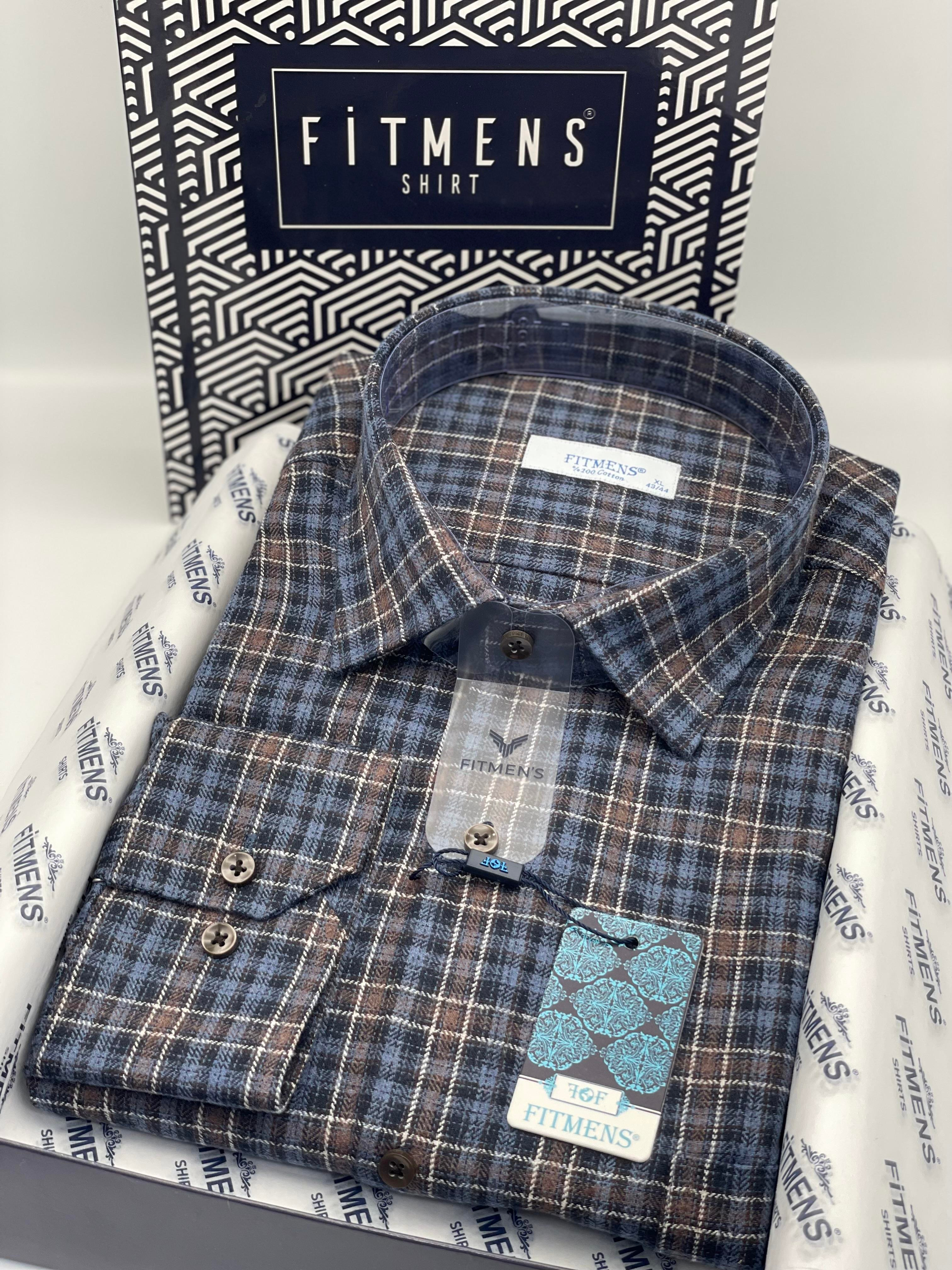 Klasik Uzun Kol Kışlık Ekoseli Oduncu Yaka Altı Düğmeli Pamuklu Hediye Kutulu Erkek Gömlek FS-001987 - Kahverengi (FS-001987)