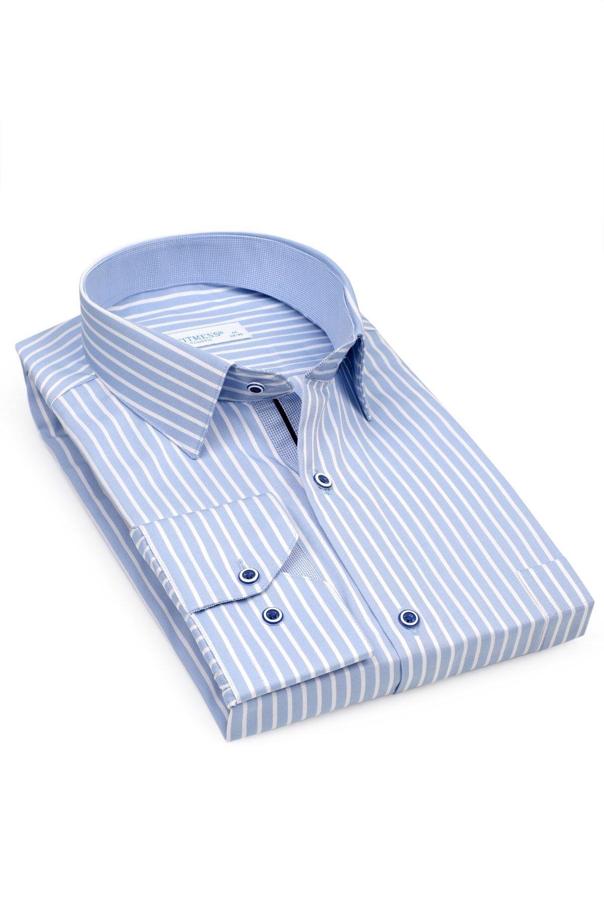 Klasik Uzun Kol Premium Kalın Çizgili Hediye Kutulu Erkek Gömlek FS-001266 - Mavi Beyaz (FS-001266)