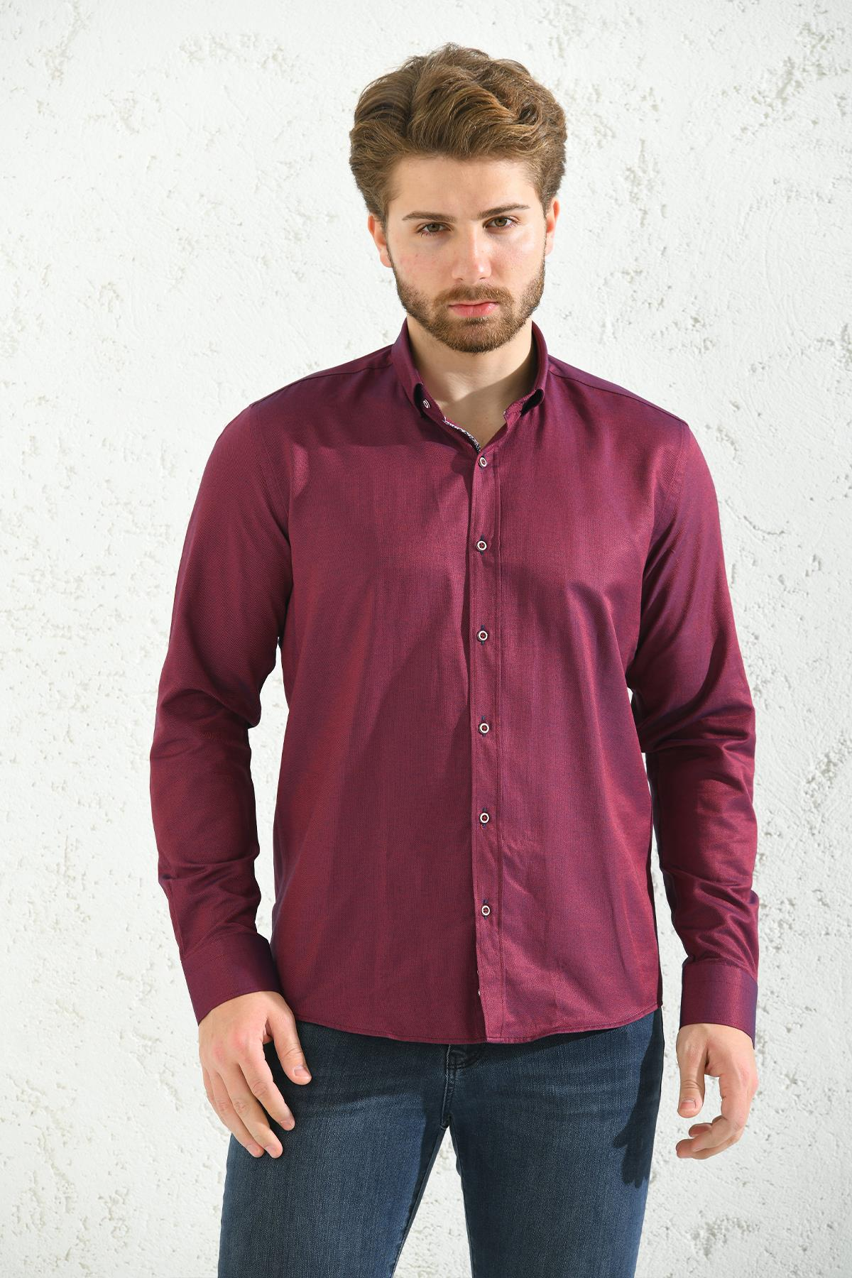 Slim Fit Uzun Kol Oxford Hediye Kutulu Kolay Ütülenebilir Erkek Gömlek - Bordo (FS-001377)