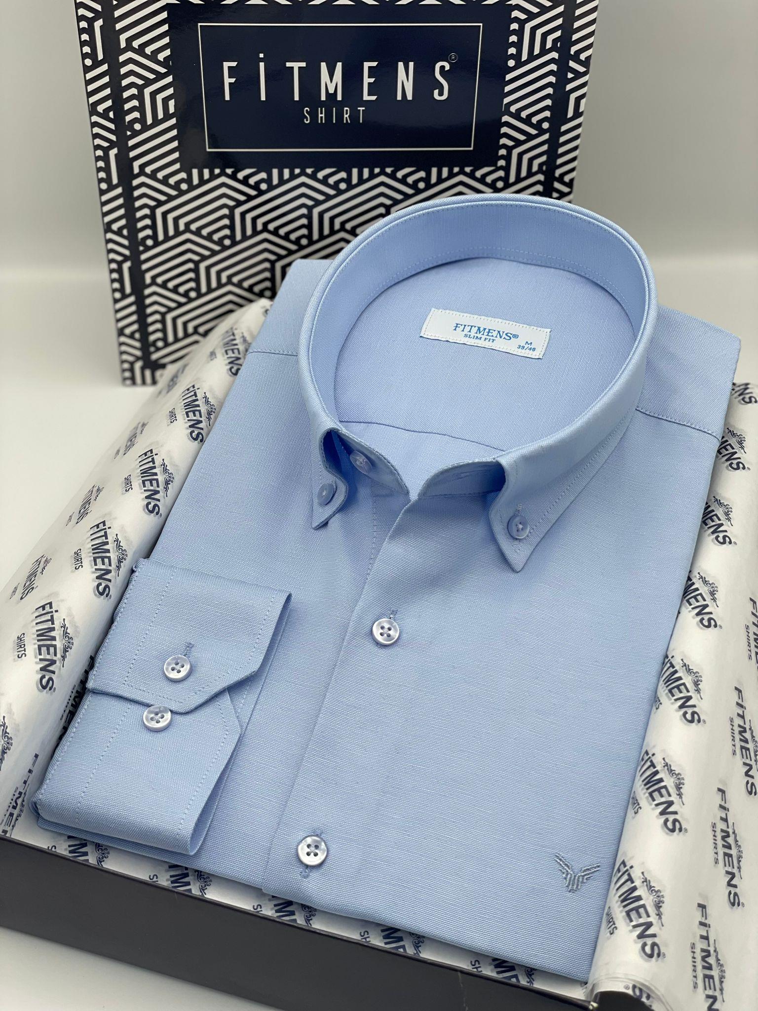 Slim Fit Uzun Kol Pamuklu Hediye Kutulu Kolay Ütülenebilir Erkek Gömlek FS-002225 - Mavi (FS-002225)
