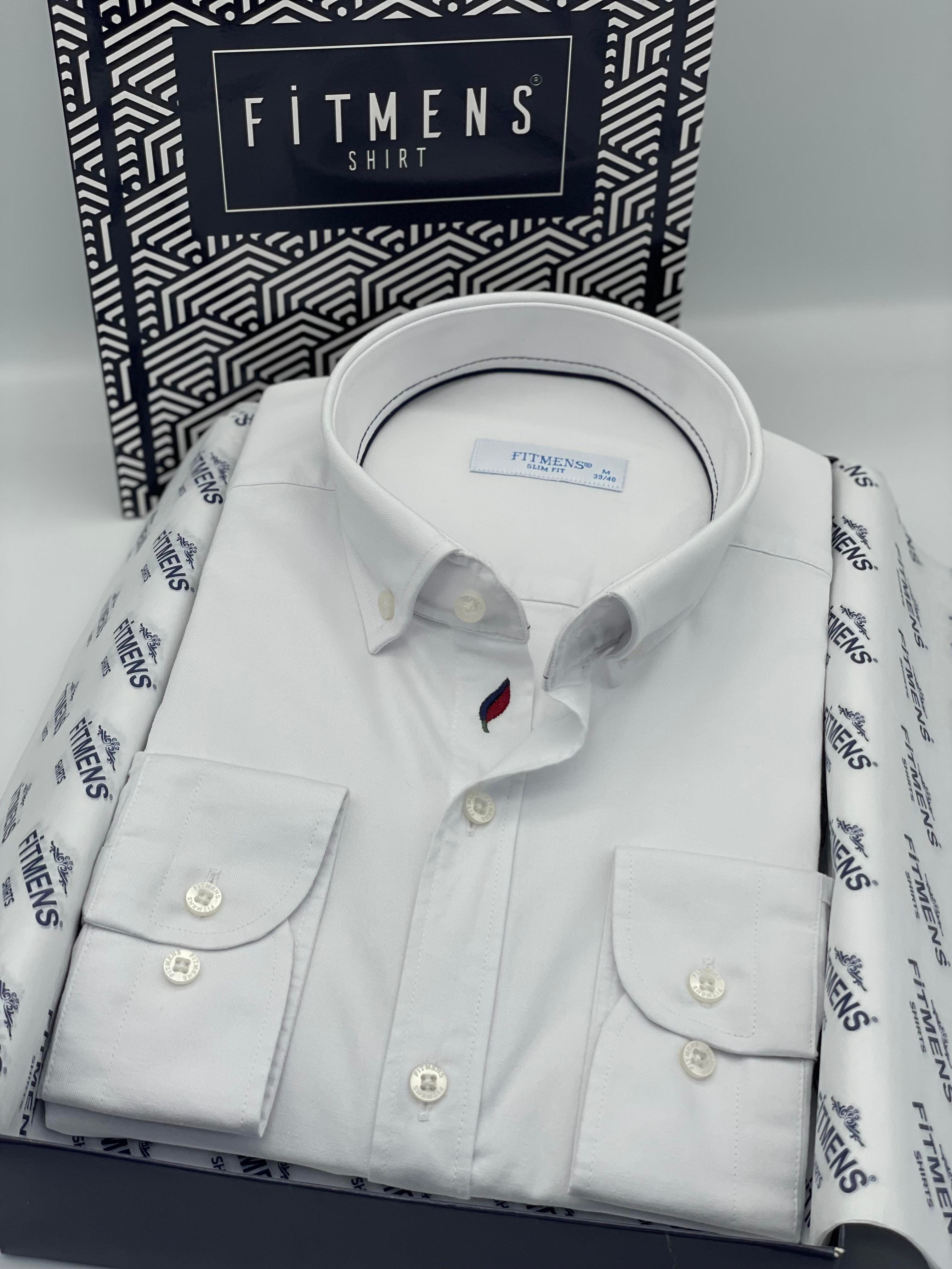 Slim Fit Uzun Kol Yıkamalı Gabardin Hediye Kutulu Erkek Gömlek FS-001364 - Beyaz (FS-001364)