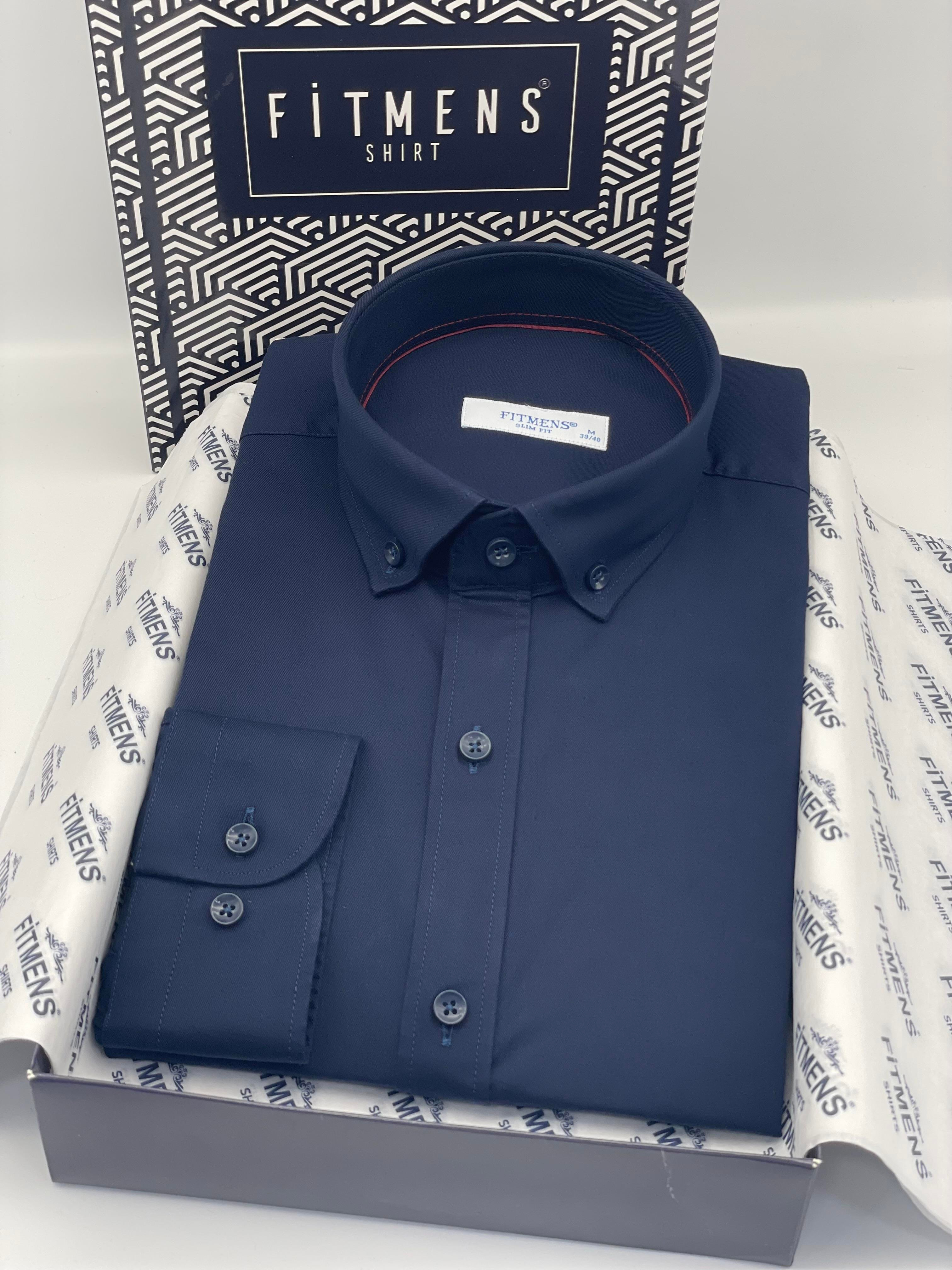 Slim Fit Uzun Kol Yıkamalı Gabardin Hediye Kutulu Erkek Gömlek FS-001364 - Lacivert (FS-001364)