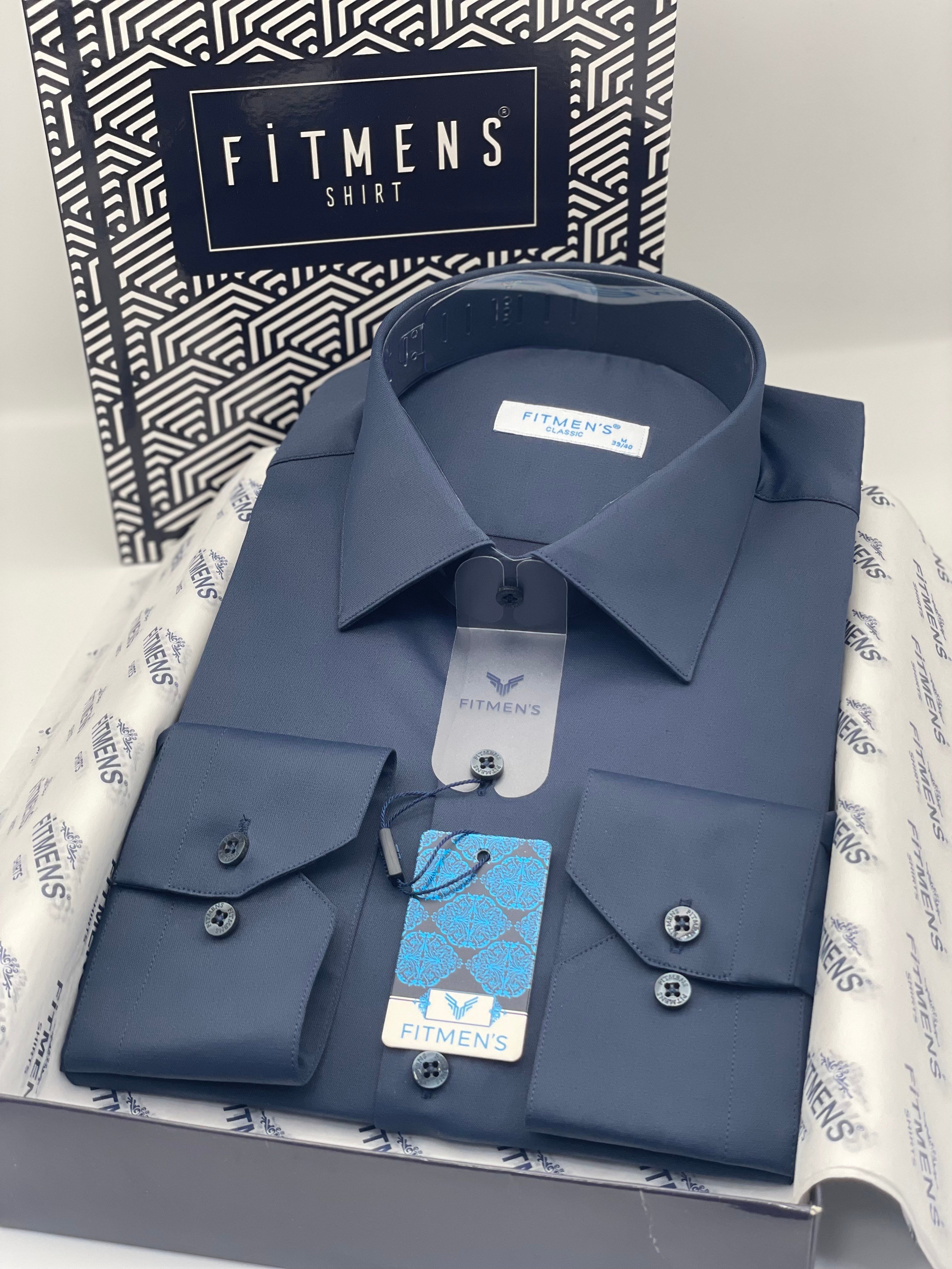 Klasik Uzun Kol Cepsiz Likralı Rahat Kumaş Erkek Gömlek FS-004517 - Lacivert (FS-004517)