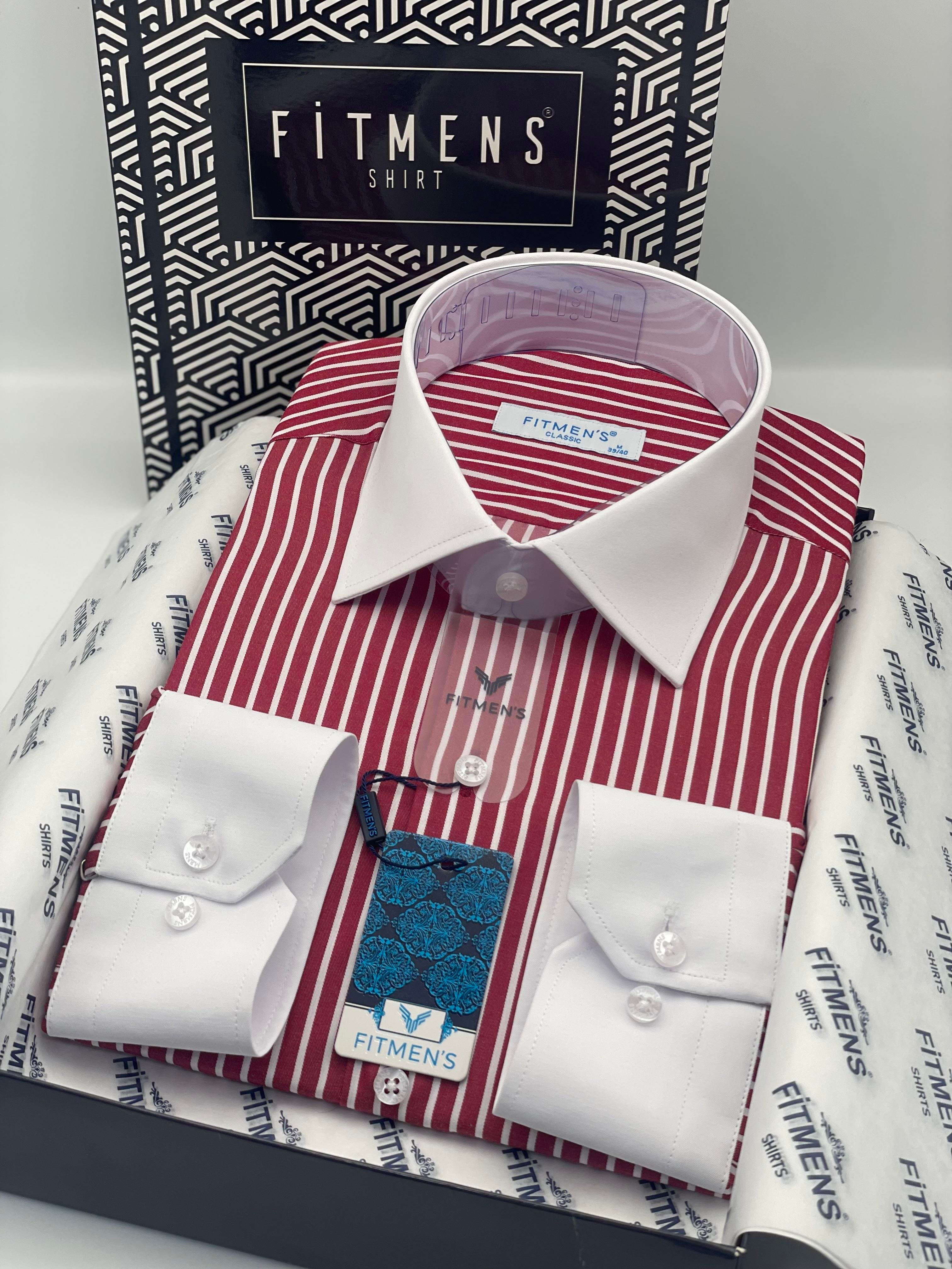 Klasik Uzun Kol Cepsiz Yaka Manşet Beyaz Hediye Kutulu Erkek Gömlek FS-004325 - Bordo Beyaz (FS-004325)