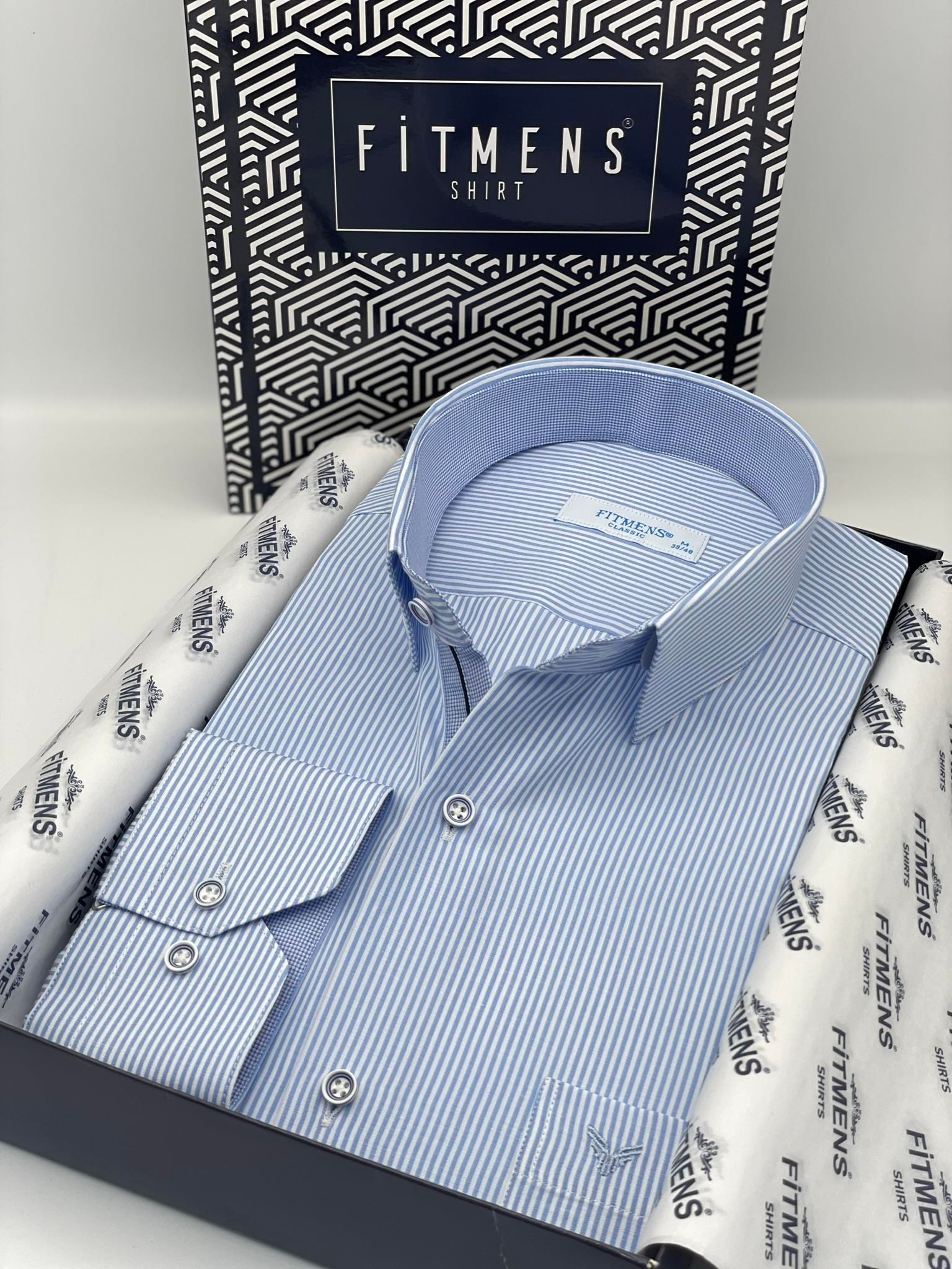 Klasik Uzun Kol İnce Çizgili Cepli Hediye Kutulu Erkek Gömlek FS-003317 - Beyaz Açık Mavi (FS-003317)