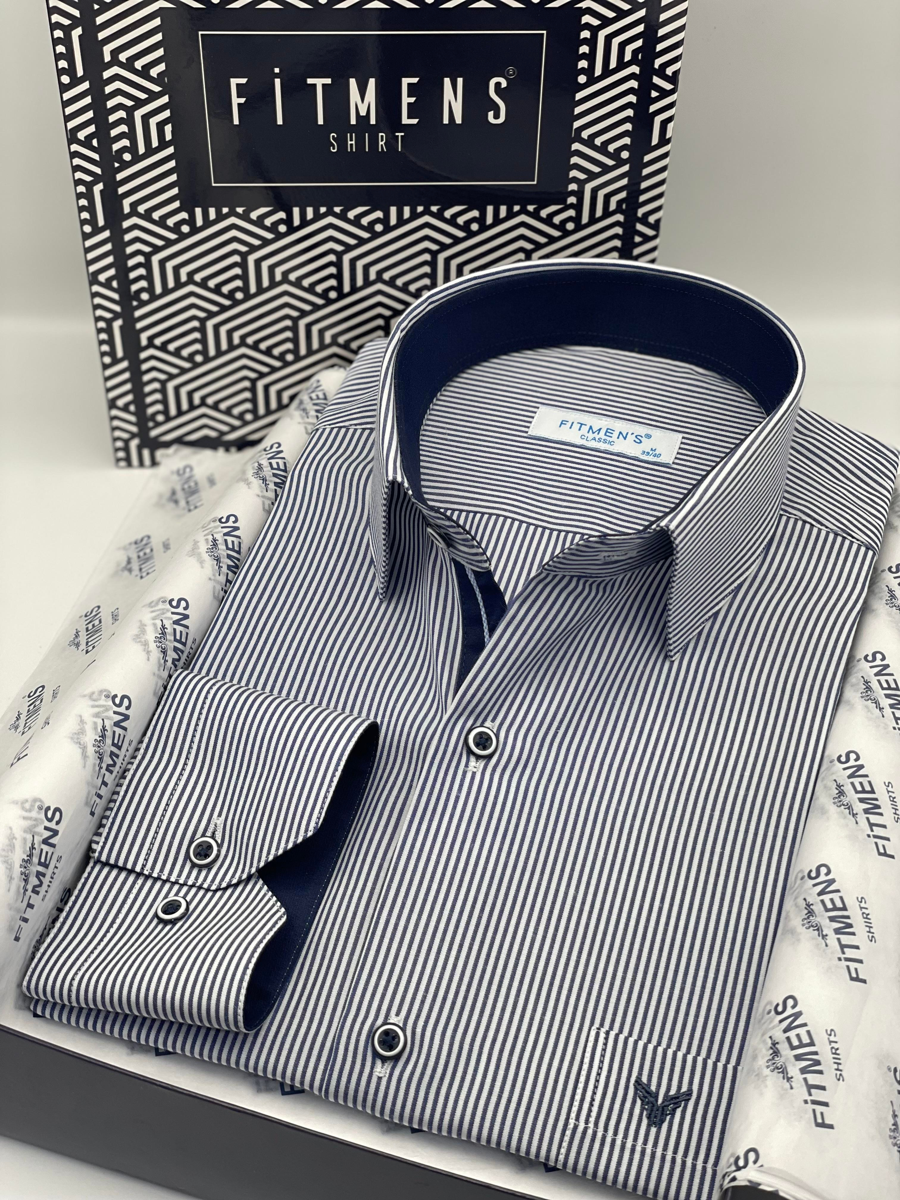 Klasik Uzun Kol İnce Çizgili Cepli Hediye Kutulu Erkek Gömlek FS-003317 - Lacivert (FS-003317)