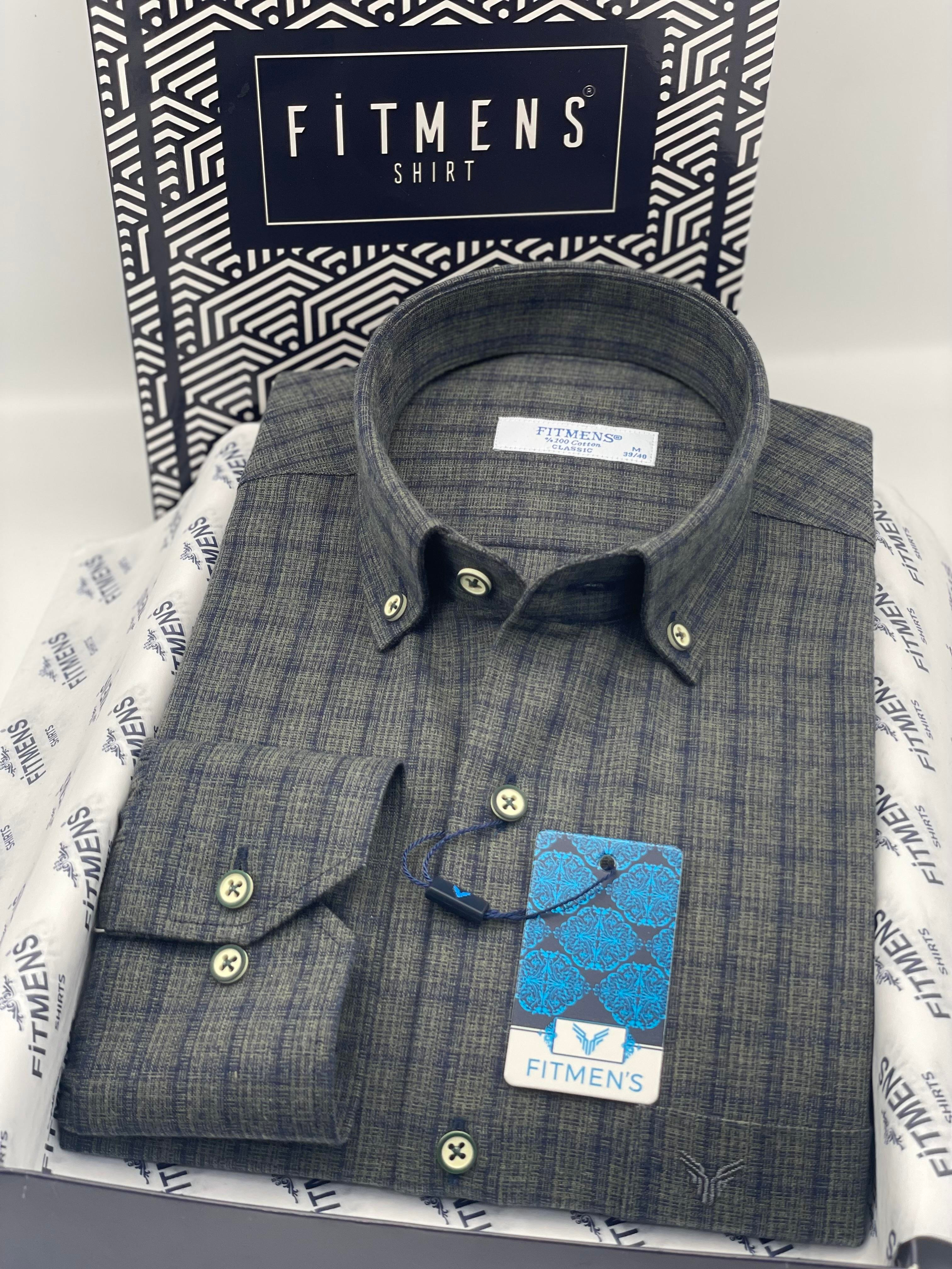 Klasik Uzun Kol Kışlık Kareli Yaka Düğmeli Pamuklu Hediye Kutulu Erkek Gömlek FS-004342 - Haki (FS-004342)