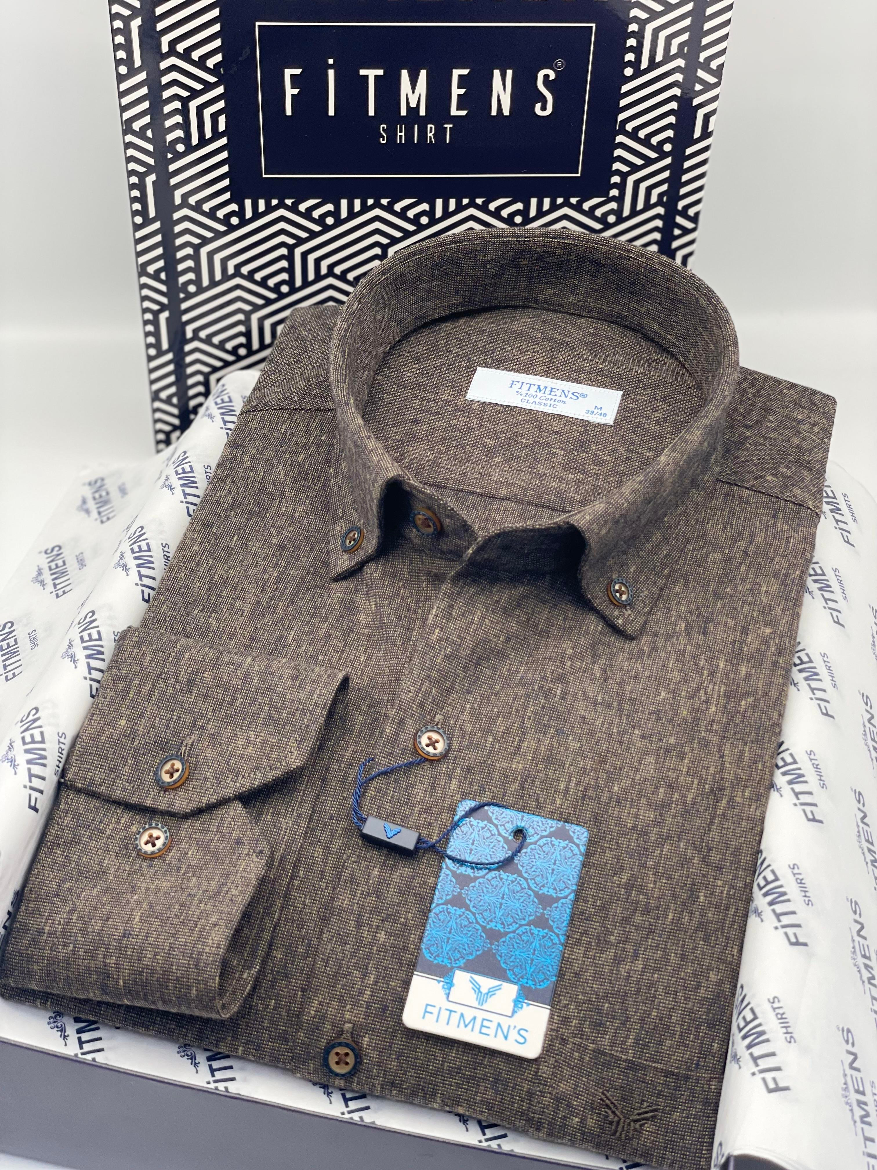 Klasik Uzun Kol Kışlık Oduncu Yaka Düğmeli Pamuklu Hediye Kutulu Erkek Gömlek Y.Filafil FS-003136 - Kahverengi (FS-003136)