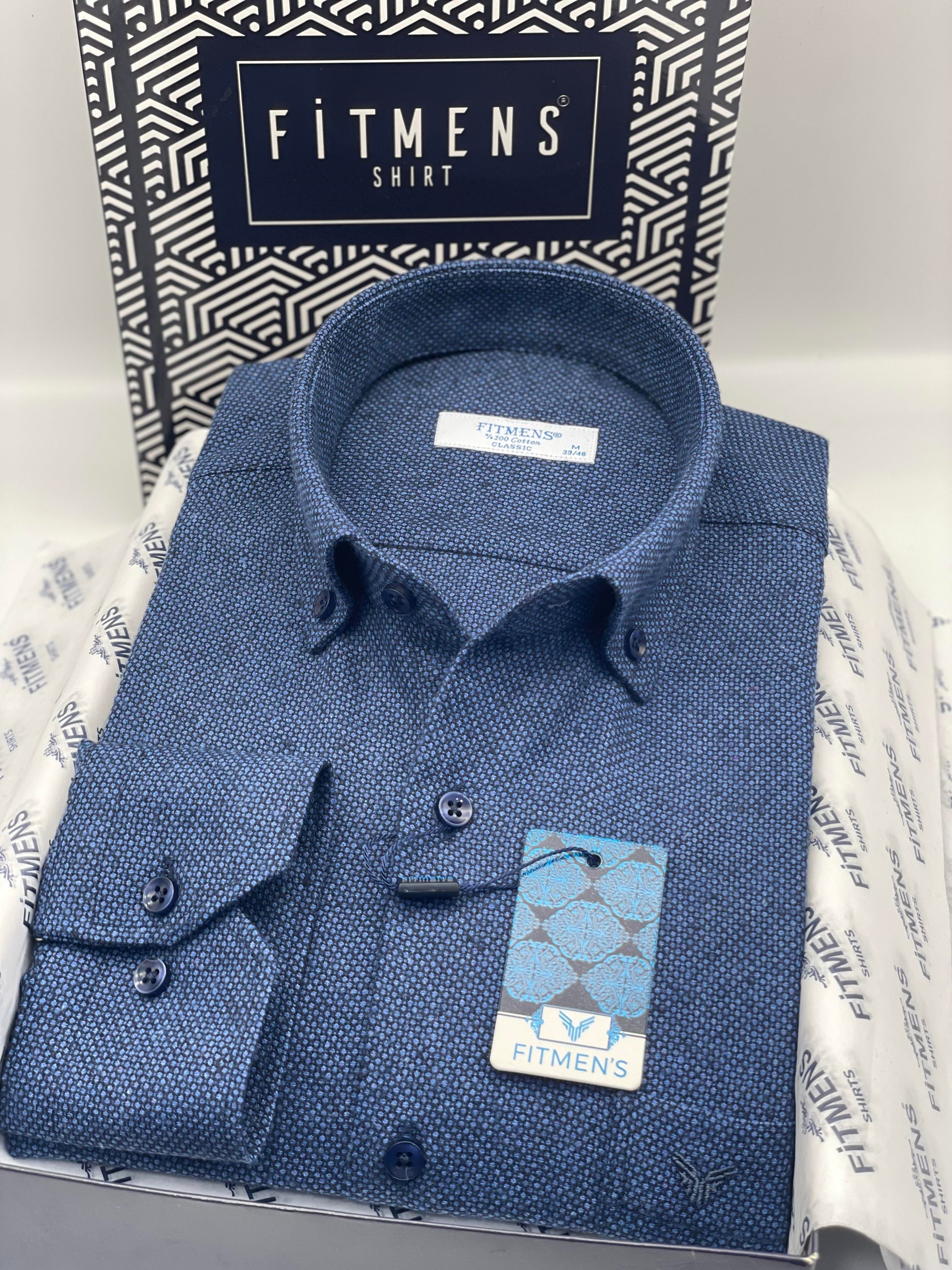 Klasik Uzun Kol Kışlık Yaka Düğmeli Yünlü %100 Cotton Hediye Kutulu Erkek Gömlek FS-003768 - Lacivert (FS-003768)