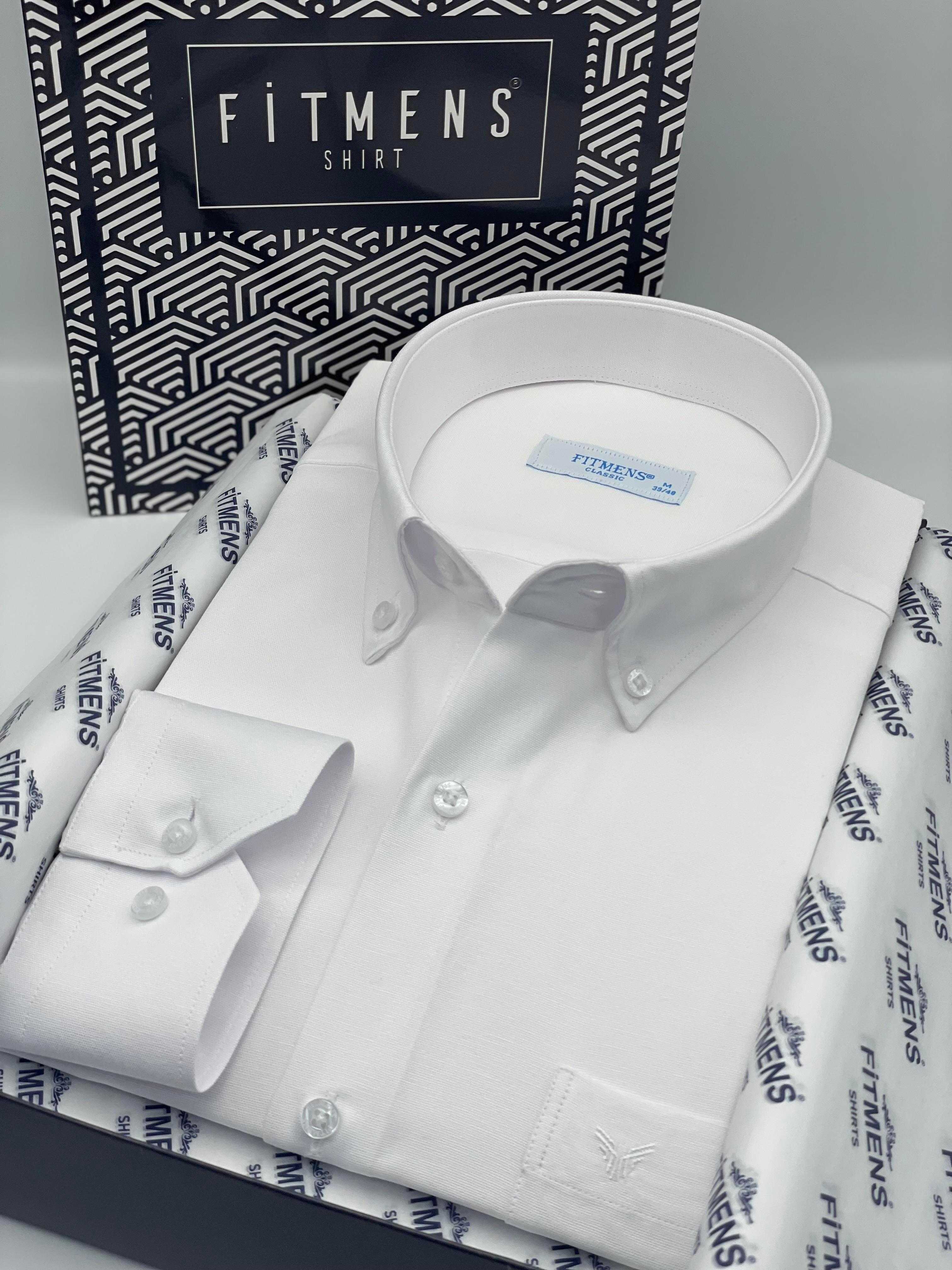 Klasik Uzun Kol Pamuklu Yaka Düğmeli Hediye Kutulu Kolay Ütülenebilir Erkek Gömlek FS-003897 - Beyaz (FS-003897)
