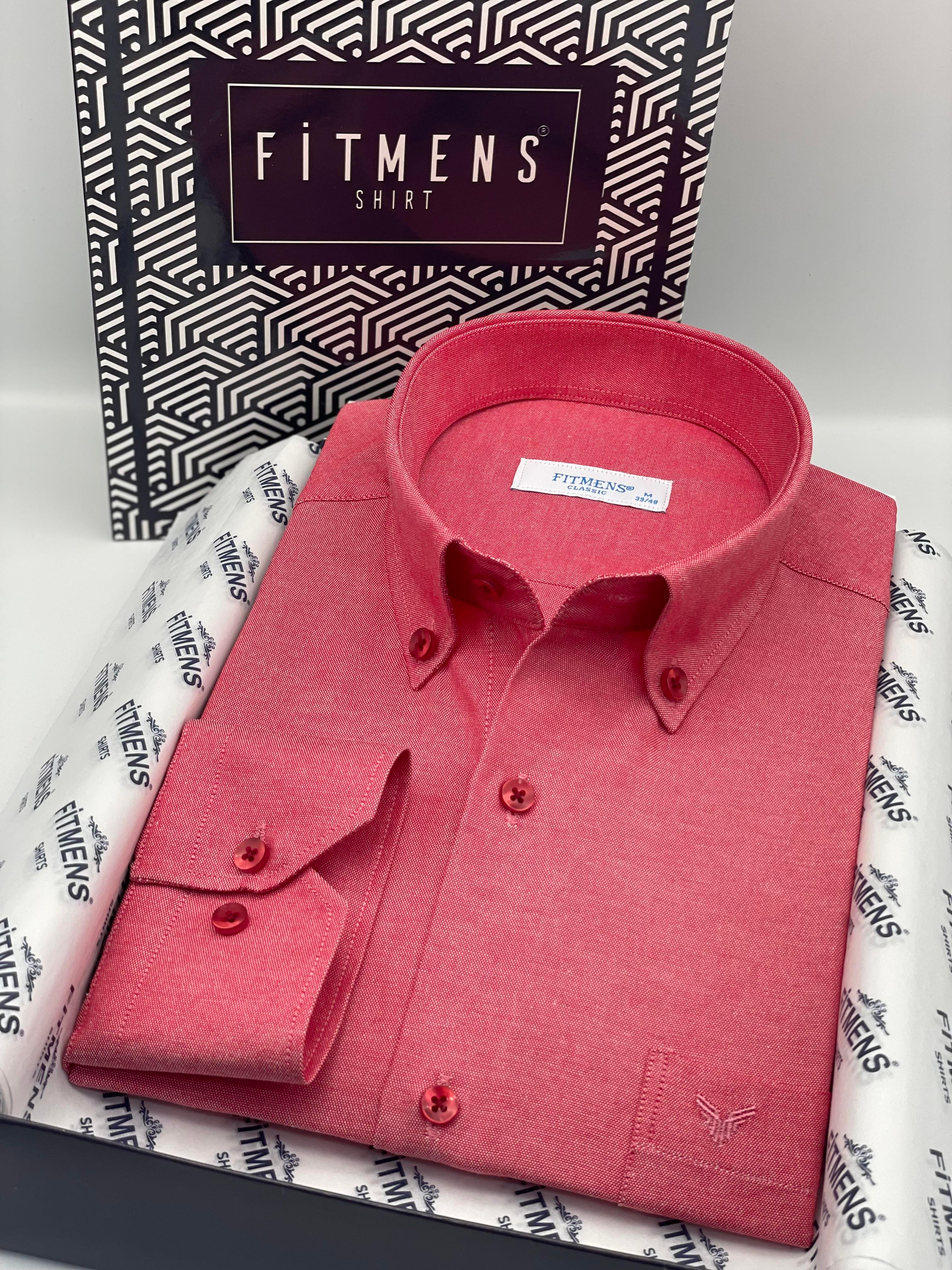 Klasik Uzun Kol Pamuklu Yaka Düğmeli Hediye Kutulu Kolay Ütülenebilir Erkek Gömlek FS-003897 - Kırmızı (FS-003897)