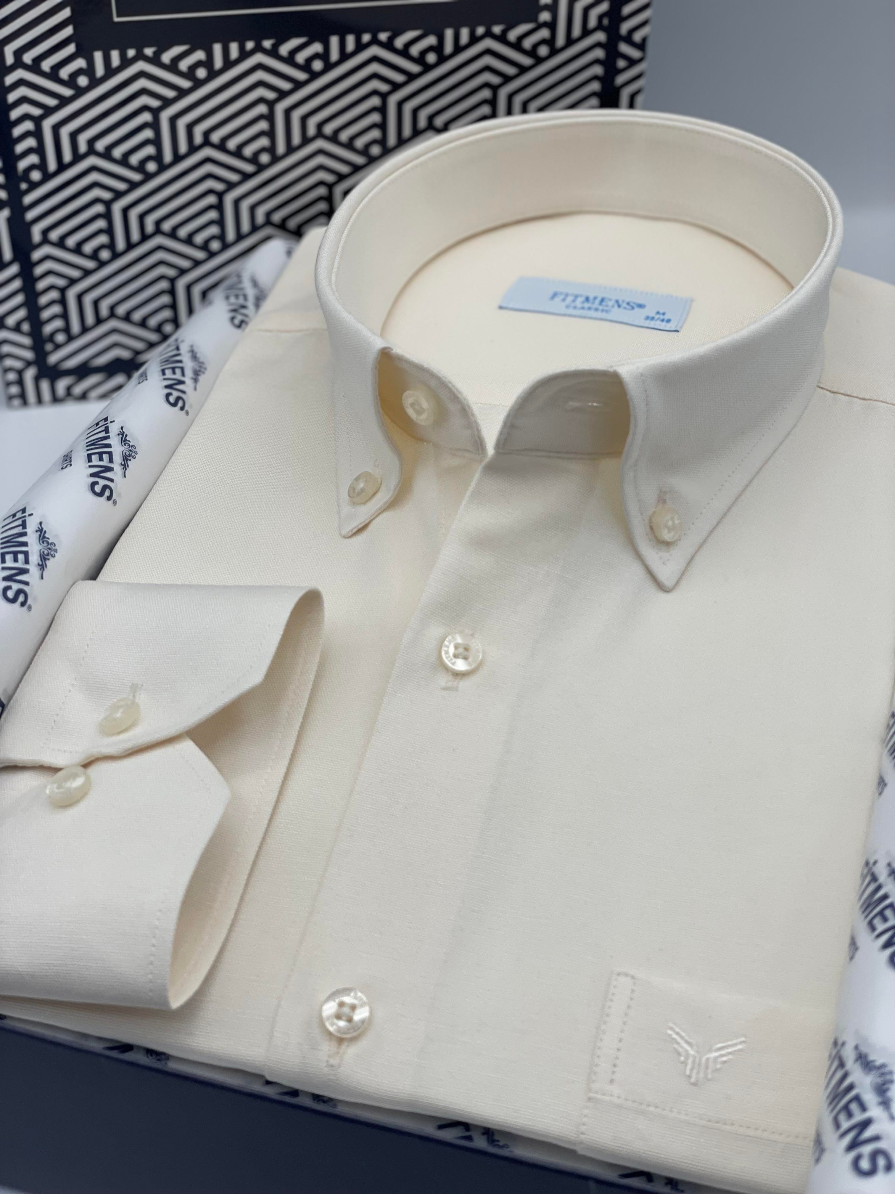 Klasik Uzun Kol Pamuklu Yaka Düğmeli Hediye Kutulu Kolay Ütülenebilir Erkek Gömlek FS-003897 - Krem (FS-003897)