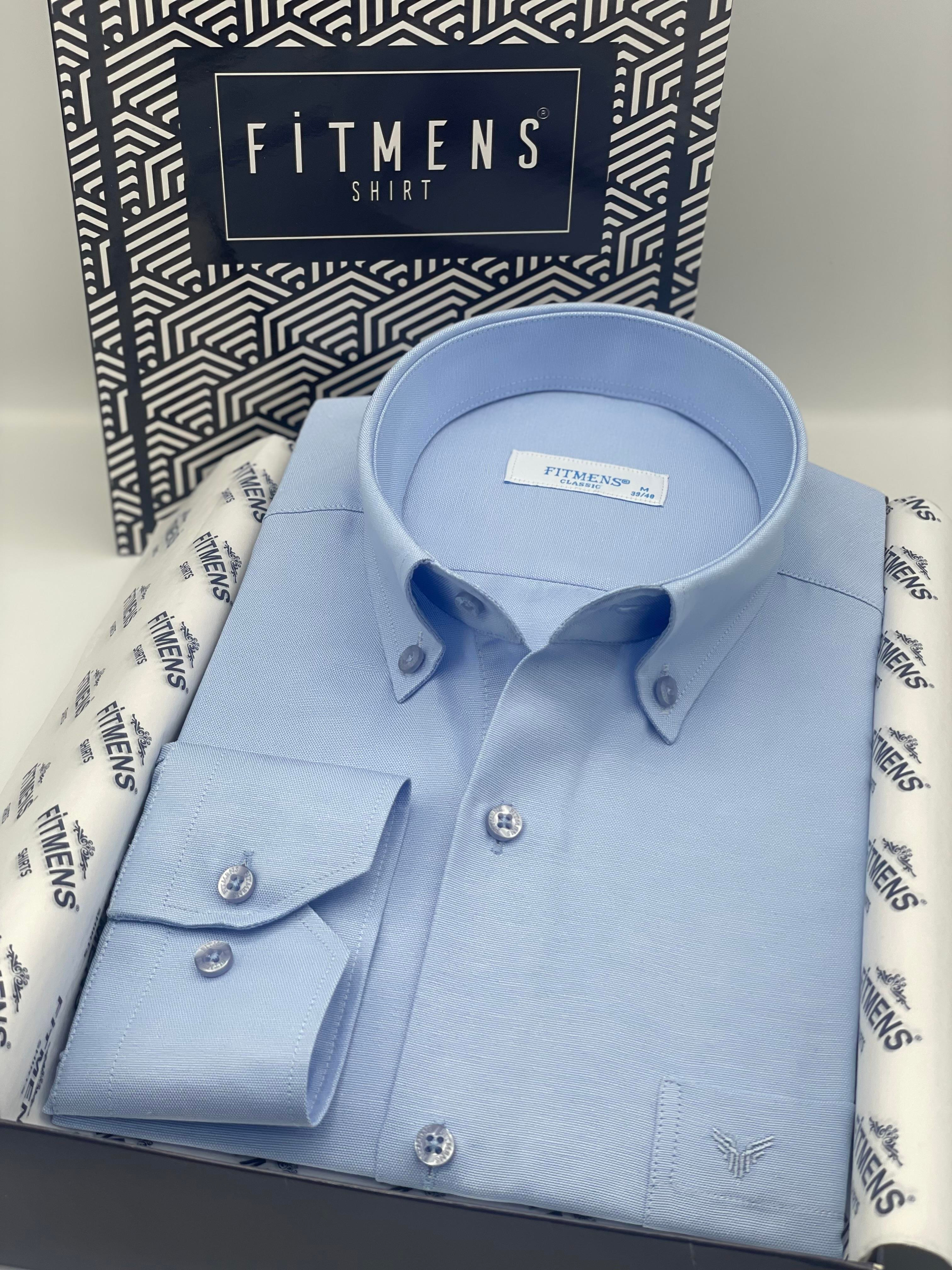 Klasik Uzun Kol Pamuklu Yaka Düğmeli Hediye Kutulu Kolay Ütülenebilir Erkek Gömlek FS-003897 - Mavi (FS-003897)