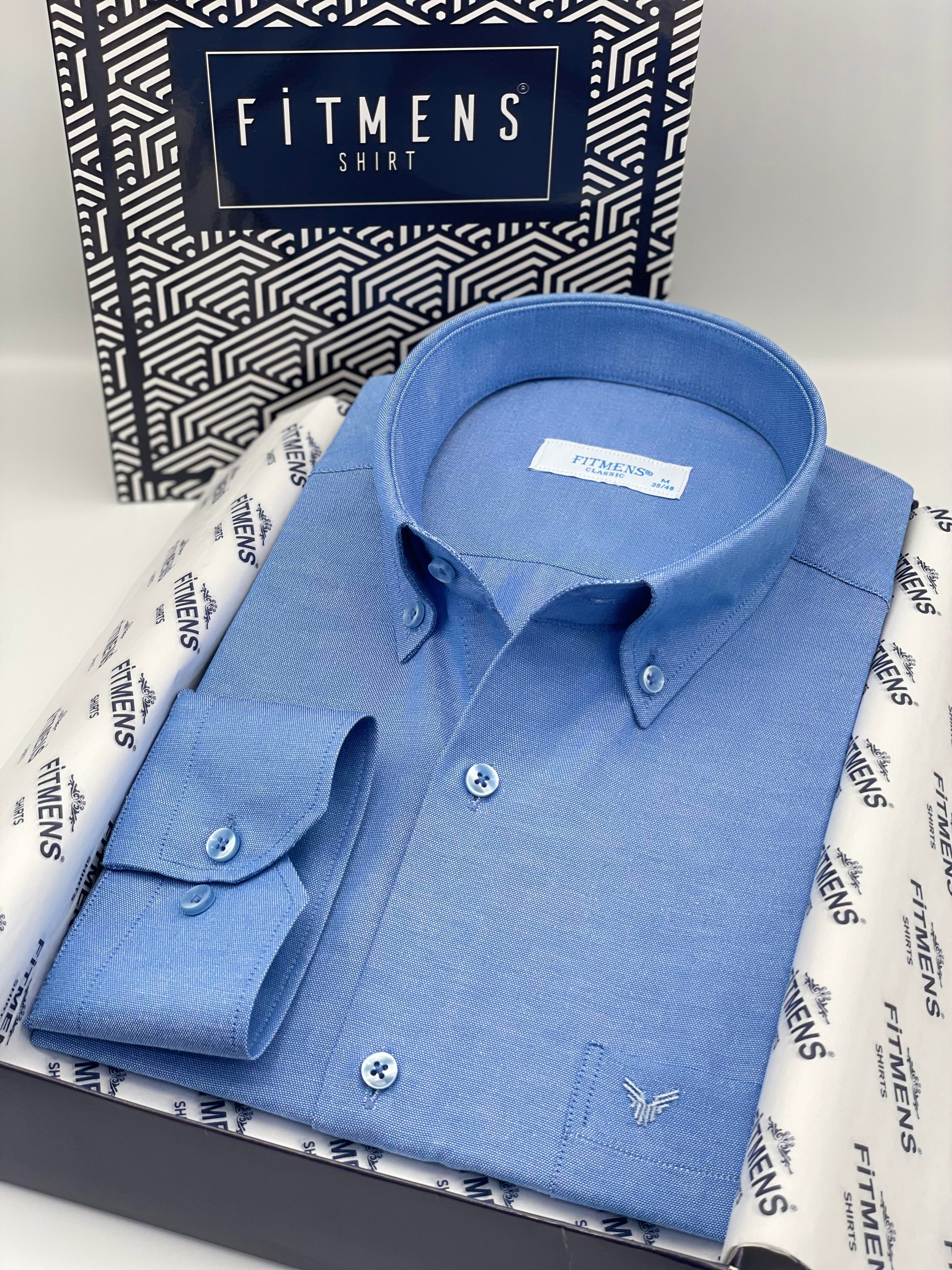 Klasik Uzun Kol Pamuklu Yaka Düğmeli Hediye Kutulu Kolay Ütülenebilir Erkek Gömlek FS-003897 - Saks Mavi (FS-003897)