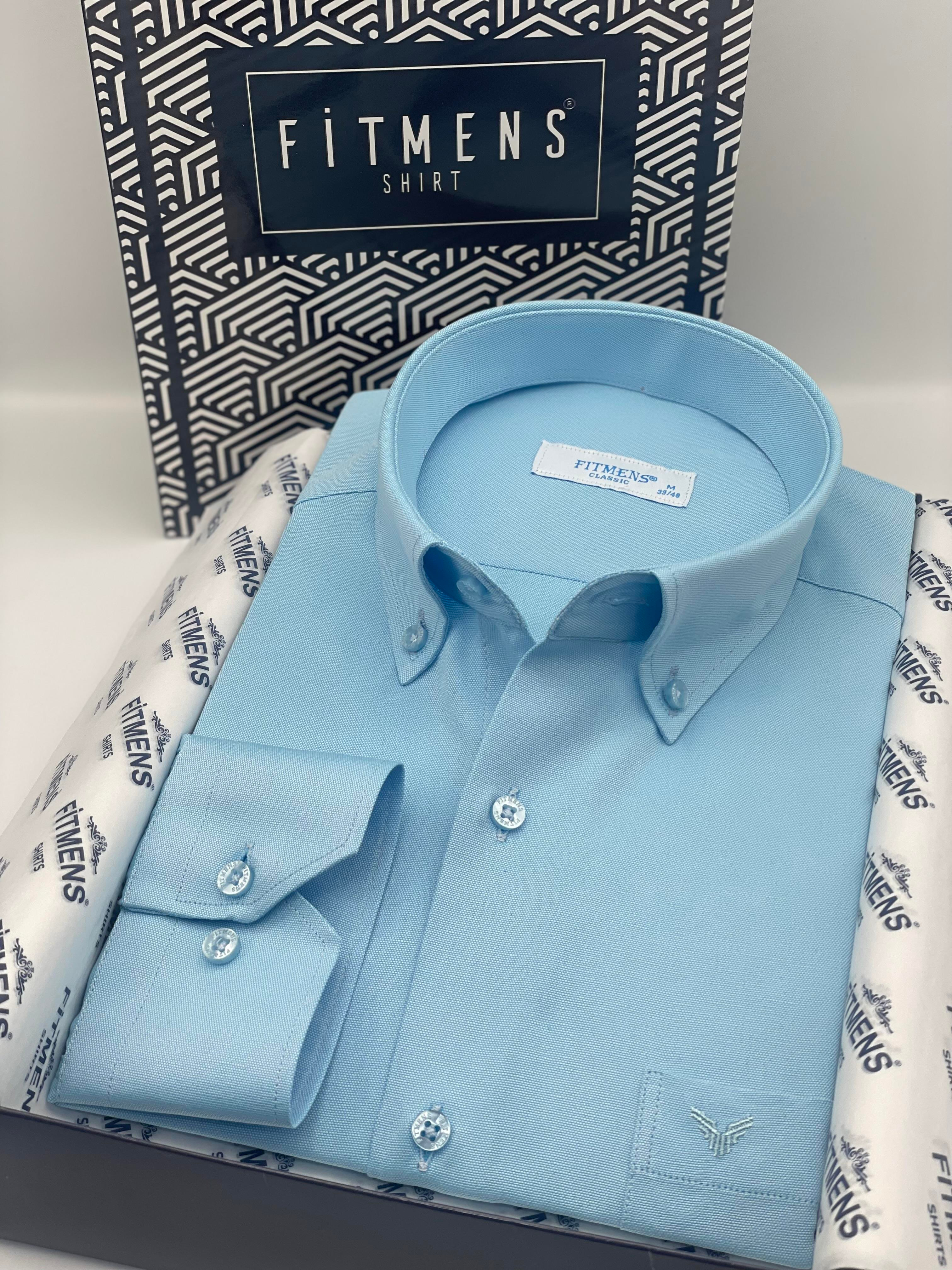 Klasik Uzun Kol Pamuklu Yaka Düğmeli Hediye Kutulu Kolay Ütülenebilir Erkek Gömlek FS-003897 - Turkuaz (FS-003897)
