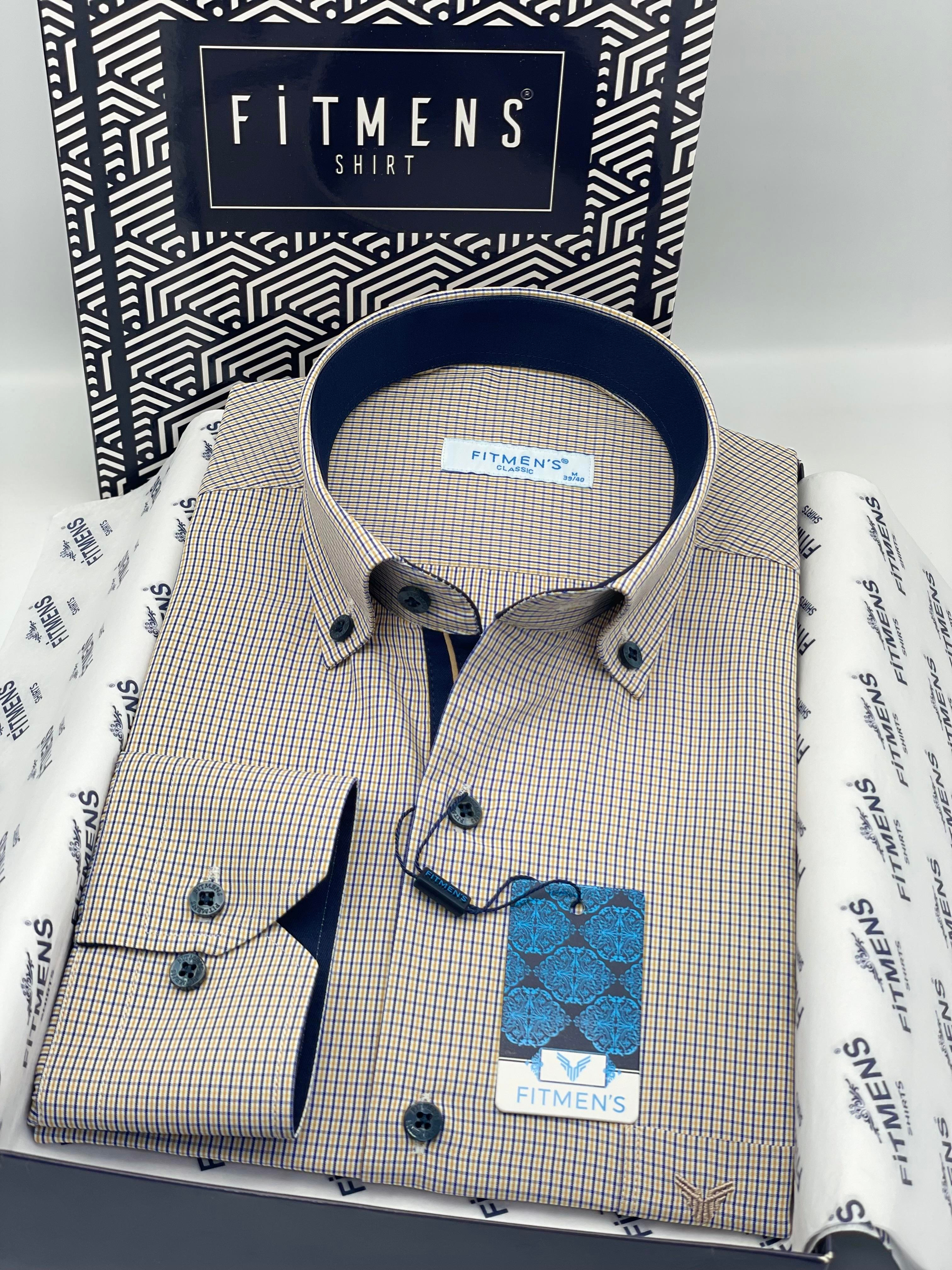 Klasik Uzun Kol Pöti Kareli Yaka Düğmeli Hediye Kutulu Erkek Gömlek FS-002273 - Sarı (FS-002273)