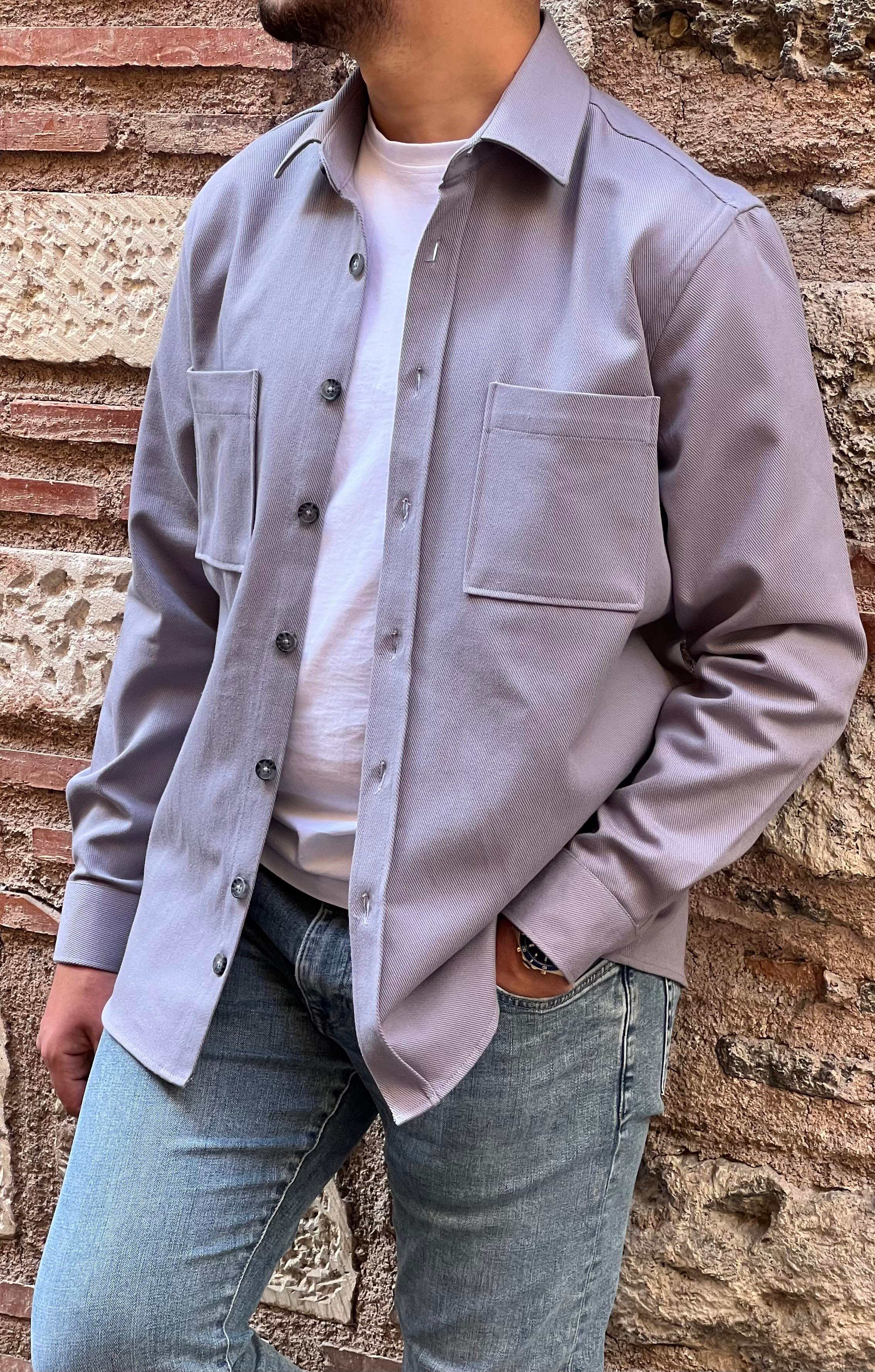 Oversize Gabardin Pamuklu Hediye Kutulu Erkek Ceket Gömlek FS-003868 - Gri (FS-003868)