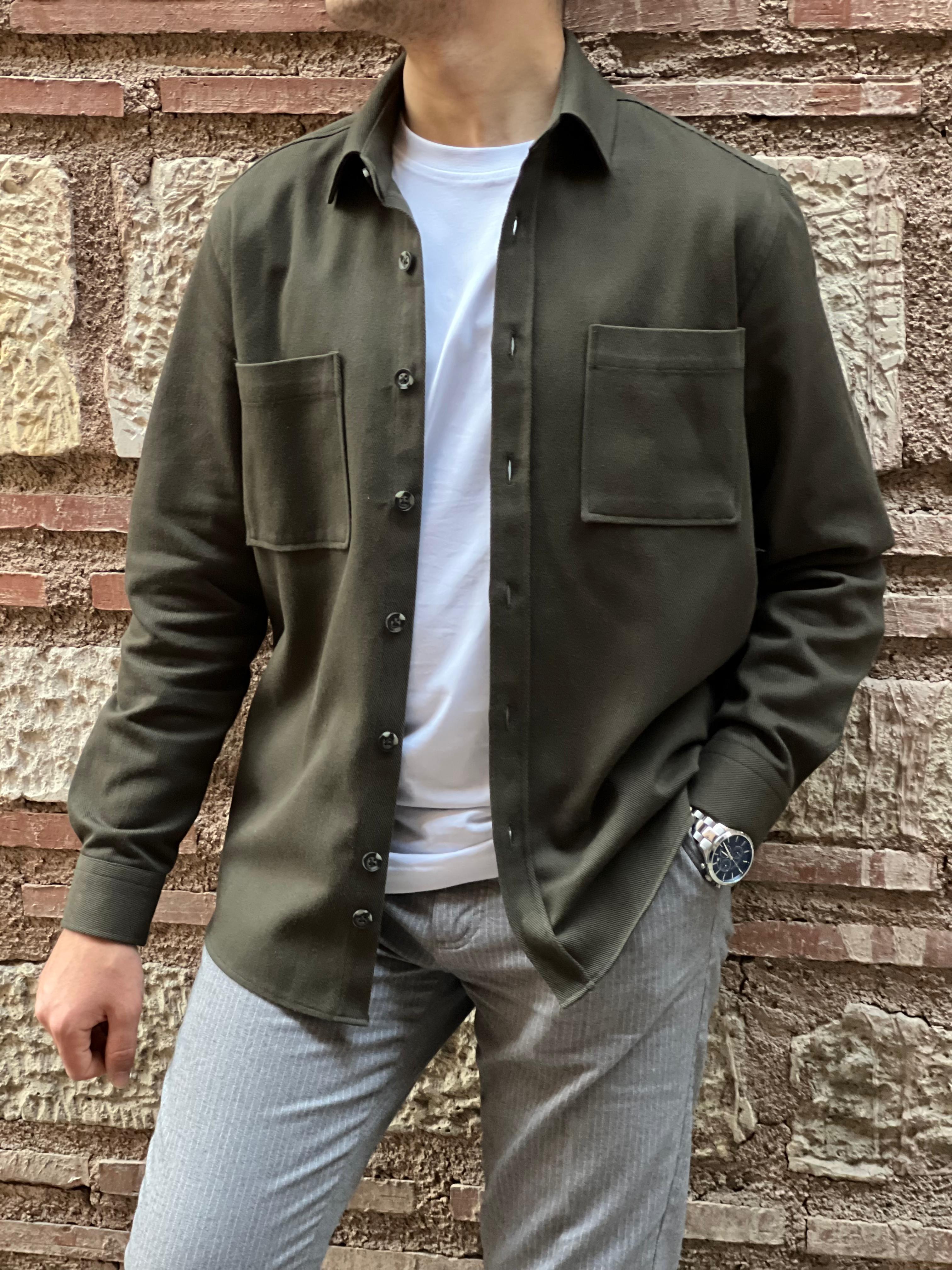 Oversize Gabardin Pamuklu Hediye Kutulu Erkek Ceket Gömlek FS-003868 - Haki (FS-003868)