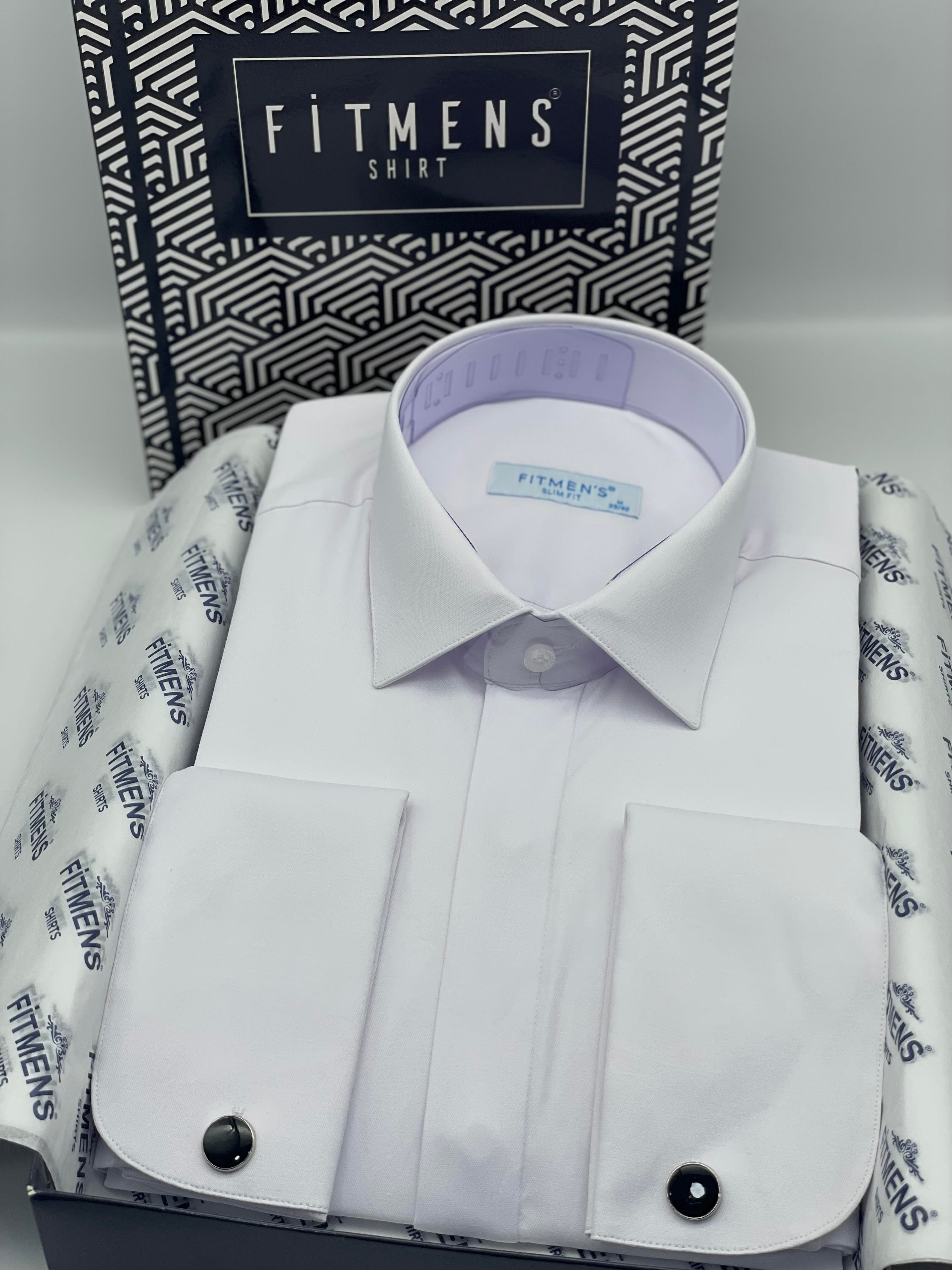 Slim Fit Uzun Kol Gizli Düğmeli Likralı Smokin Damatlık Erkek Gömlek FS-004296 - Beyaz (FS-004296)