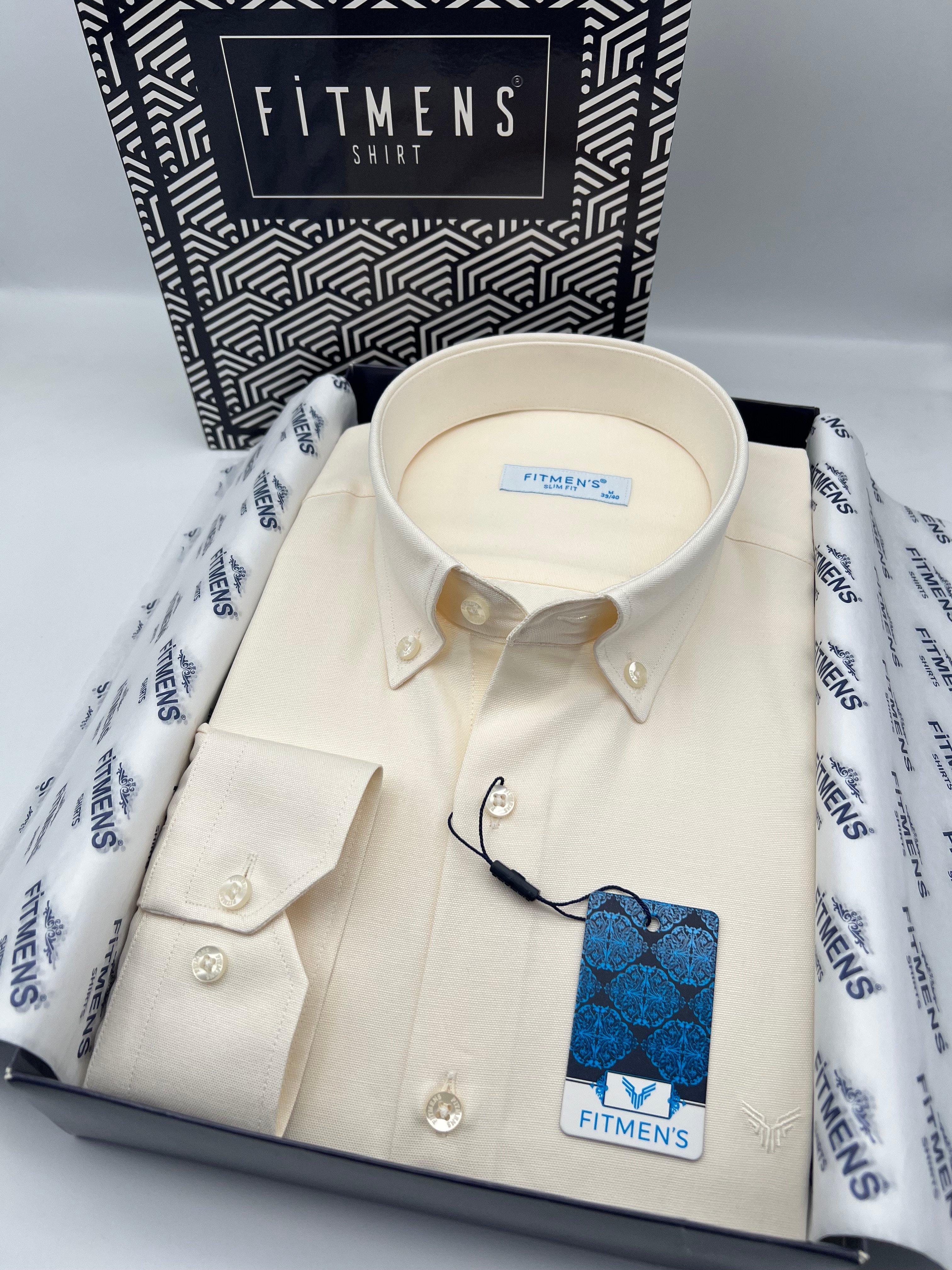 Slim Fit Uzun Kol Pamuklu Hediye Kutulu Kolay Ütülenebilir Erkek Gömlek FS-002225 - Krem (FS-002225)