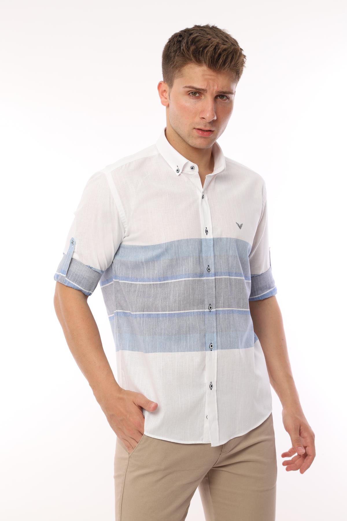 Slim Fit Uzun Kol Panolu Keten Hediye Kutulu Kolay Ütülenebilir Erkek Gömlek FS-002995 - Lacivert (FS-002995)